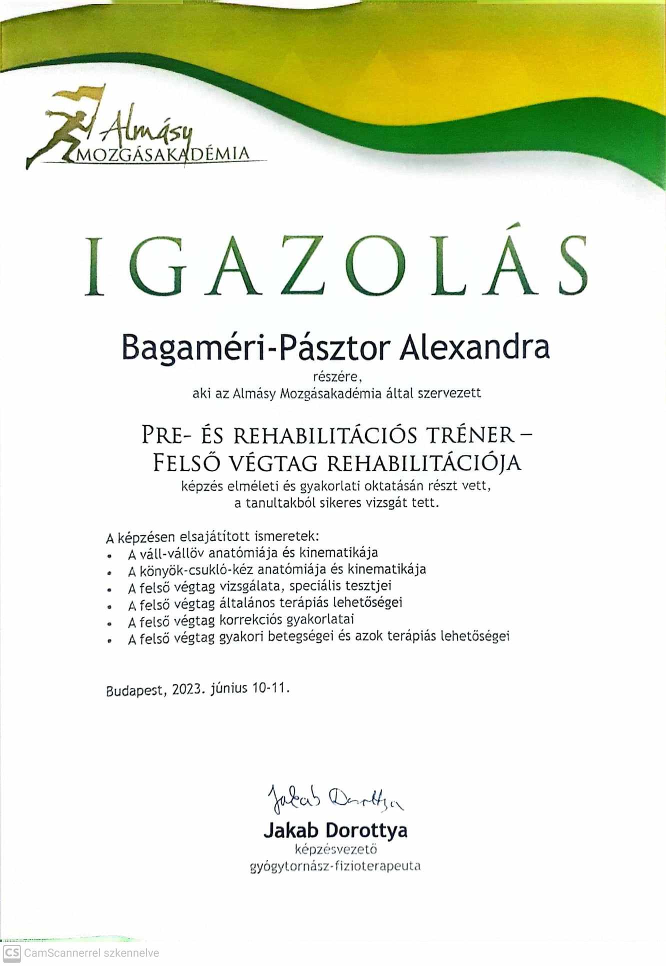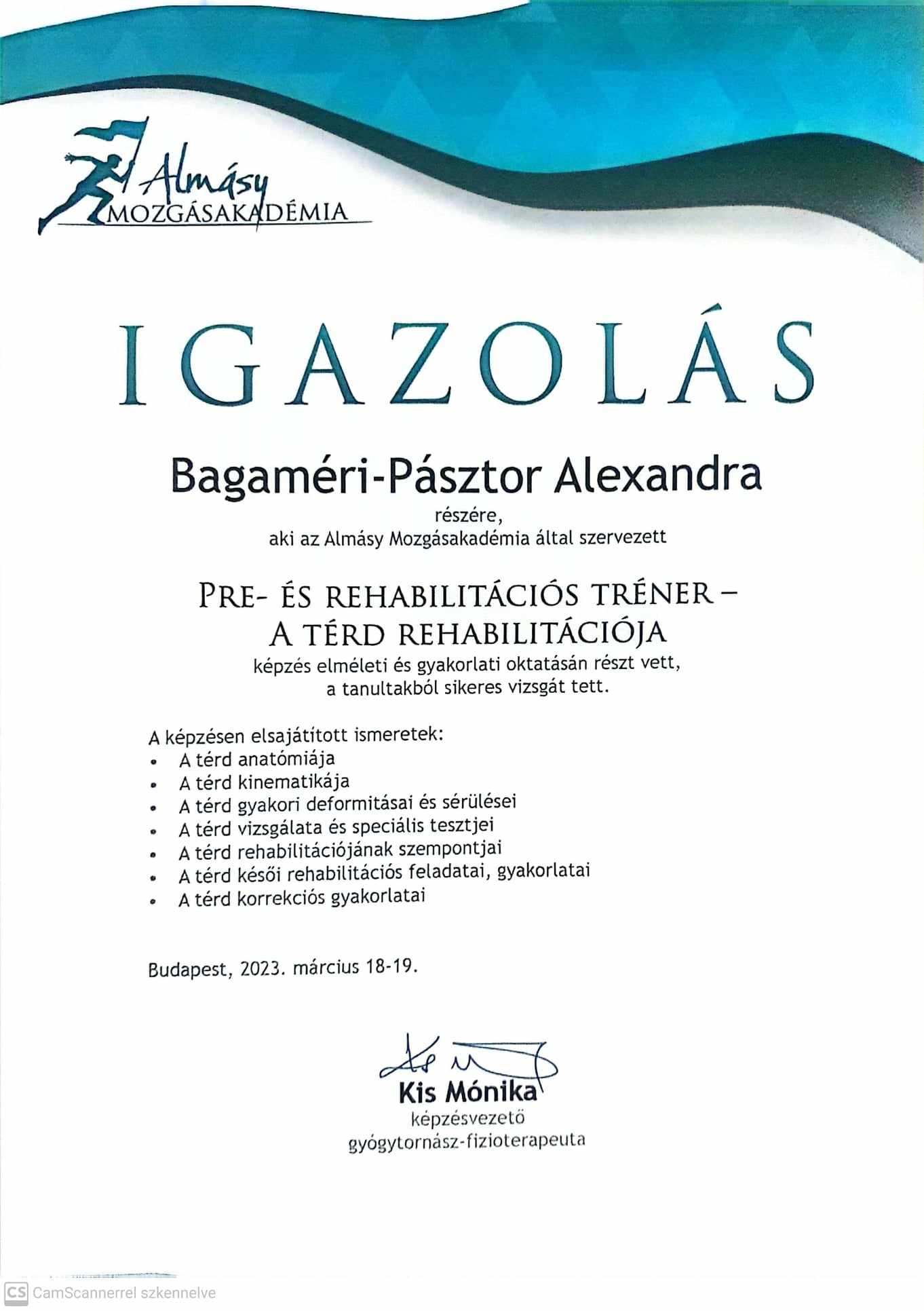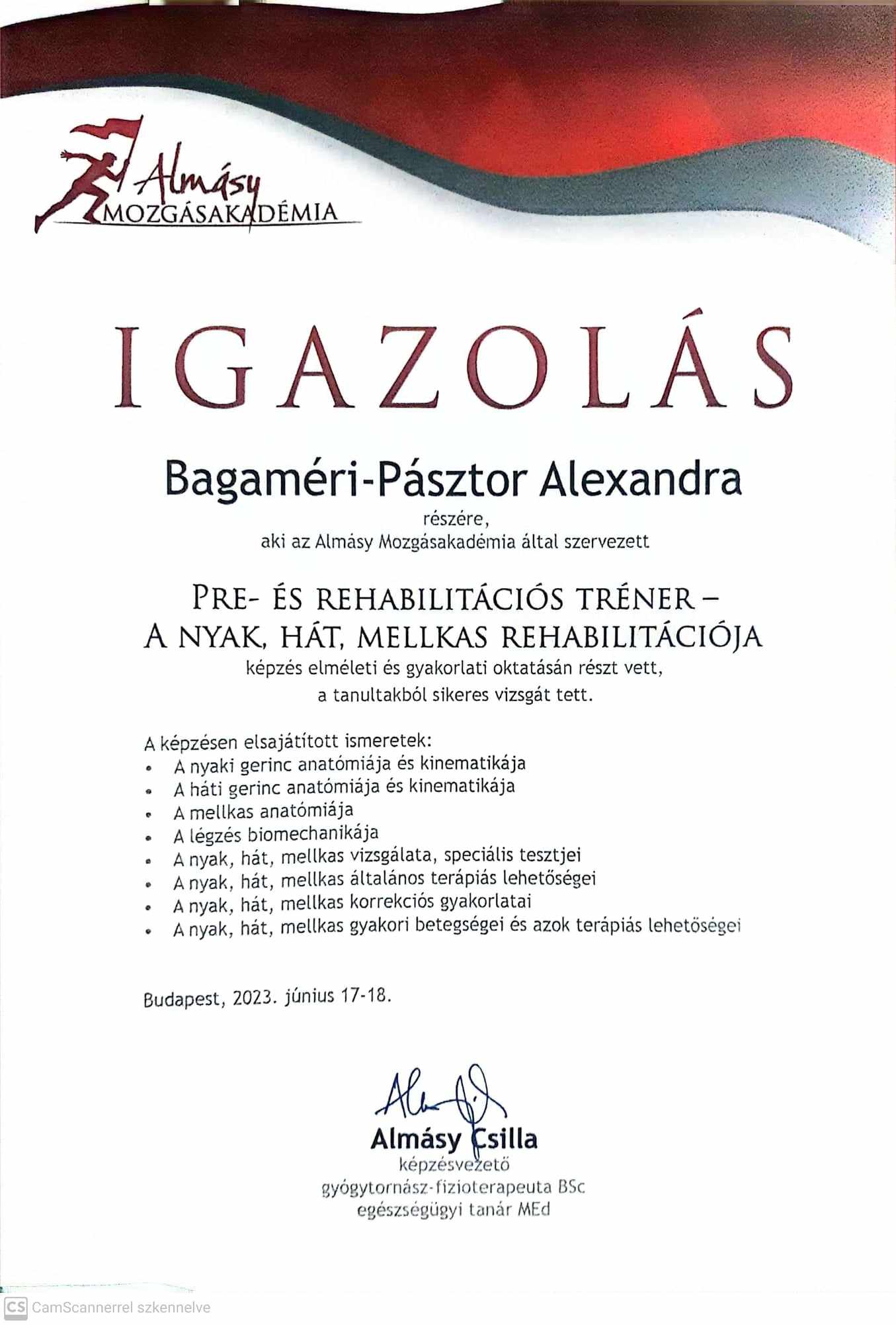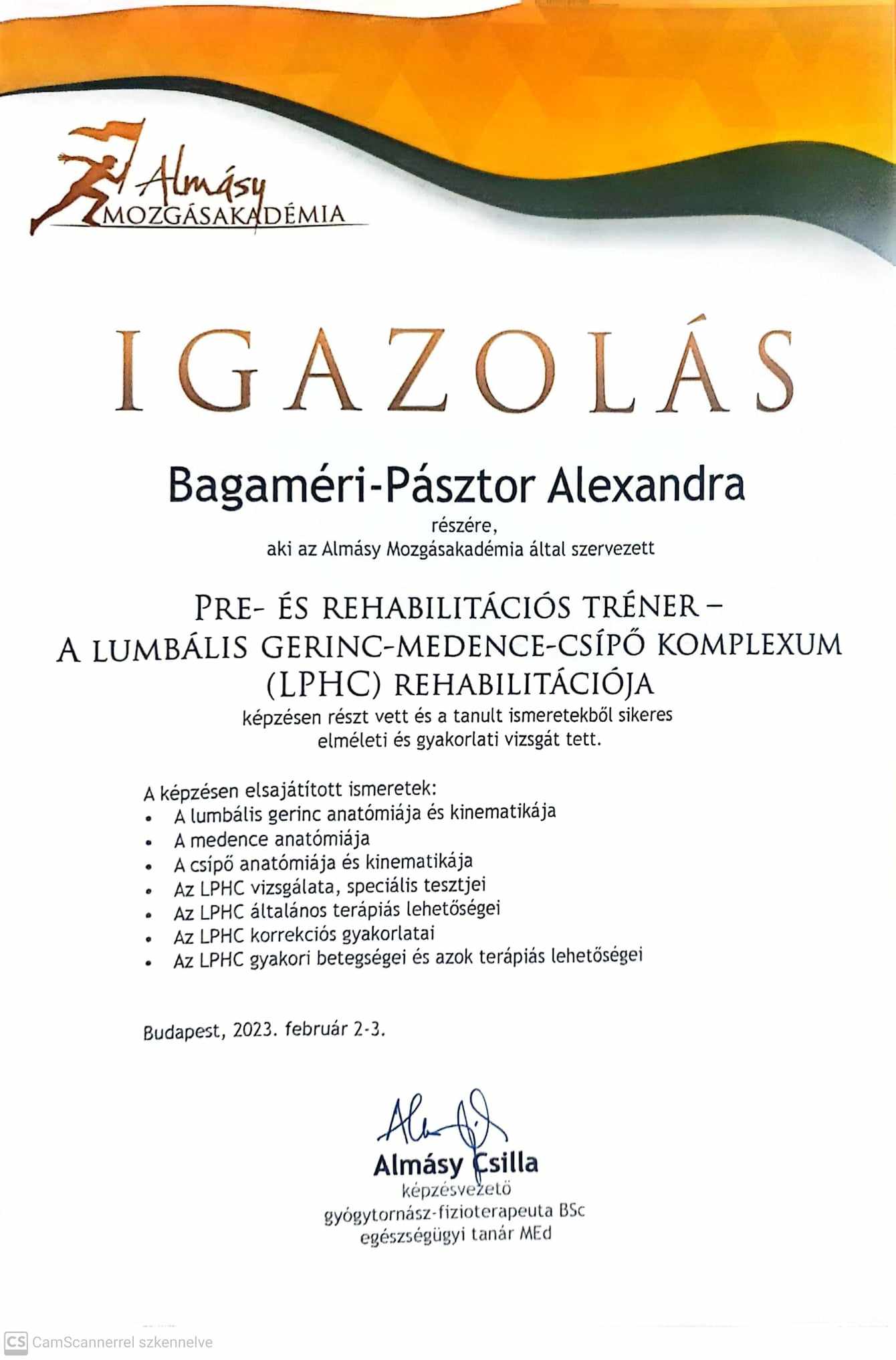 Pre- és rehabilitációs tréner – Almásy Mozgásakadémia 2022-2023