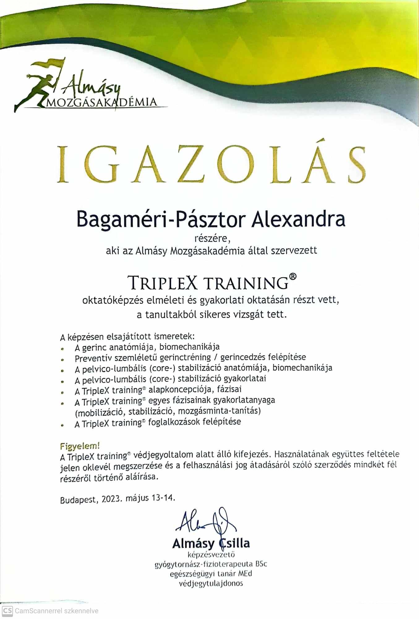 TripleX® tréner – Almásy Mozgásakadémia (Almásy Csilla) 2023