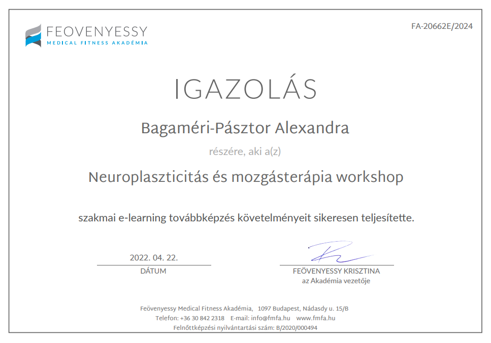 Neuroplaszticitás és mozgásterápia – Feövenyessy Medical Fitness Akadémia 2022