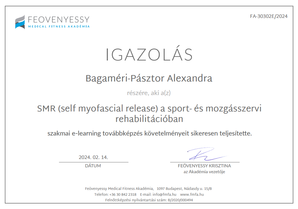 SMR (self myofascial release) a sport- és mozgásszervi rehabilitációban – Feövenyessy Medical Fitness Akadémia 2024