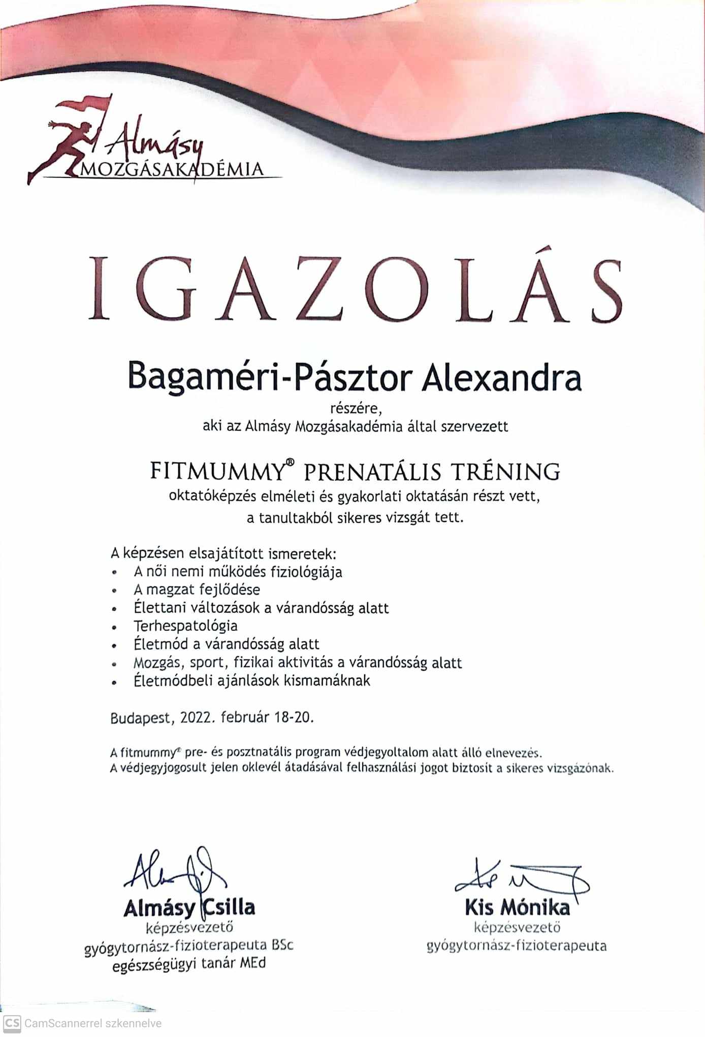 Fitmummy® prenatális tréning (kismamatorna) – Almásy Mozgásakadémia (Almásy Csilla, Kis Mónika) 2022