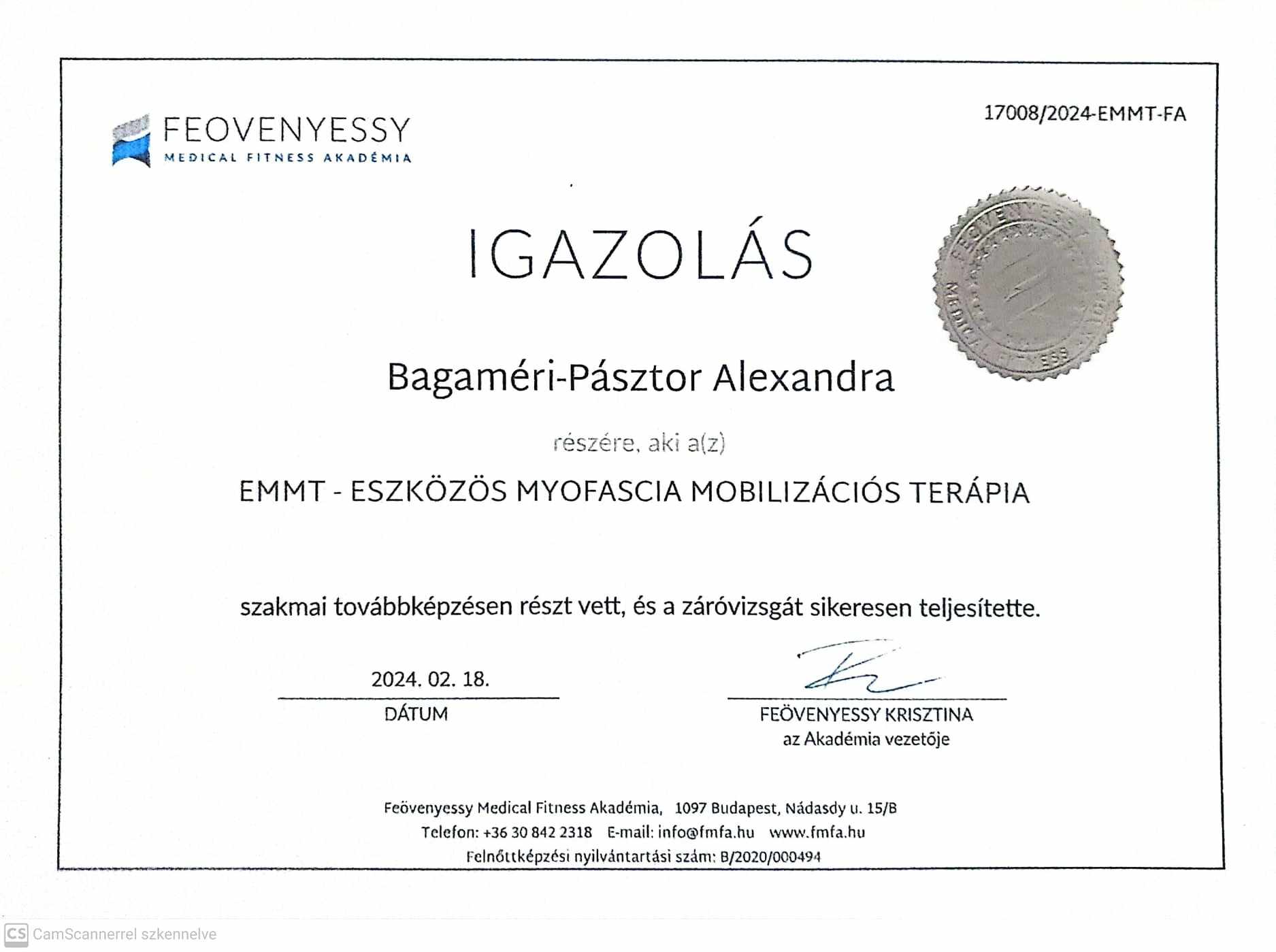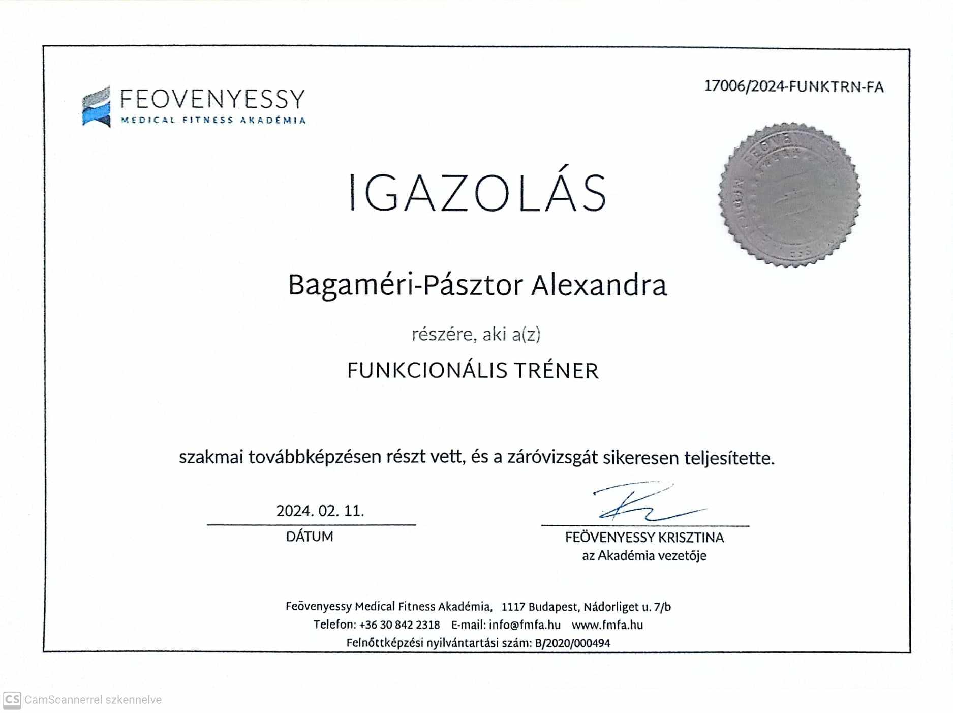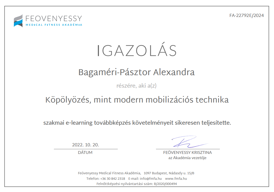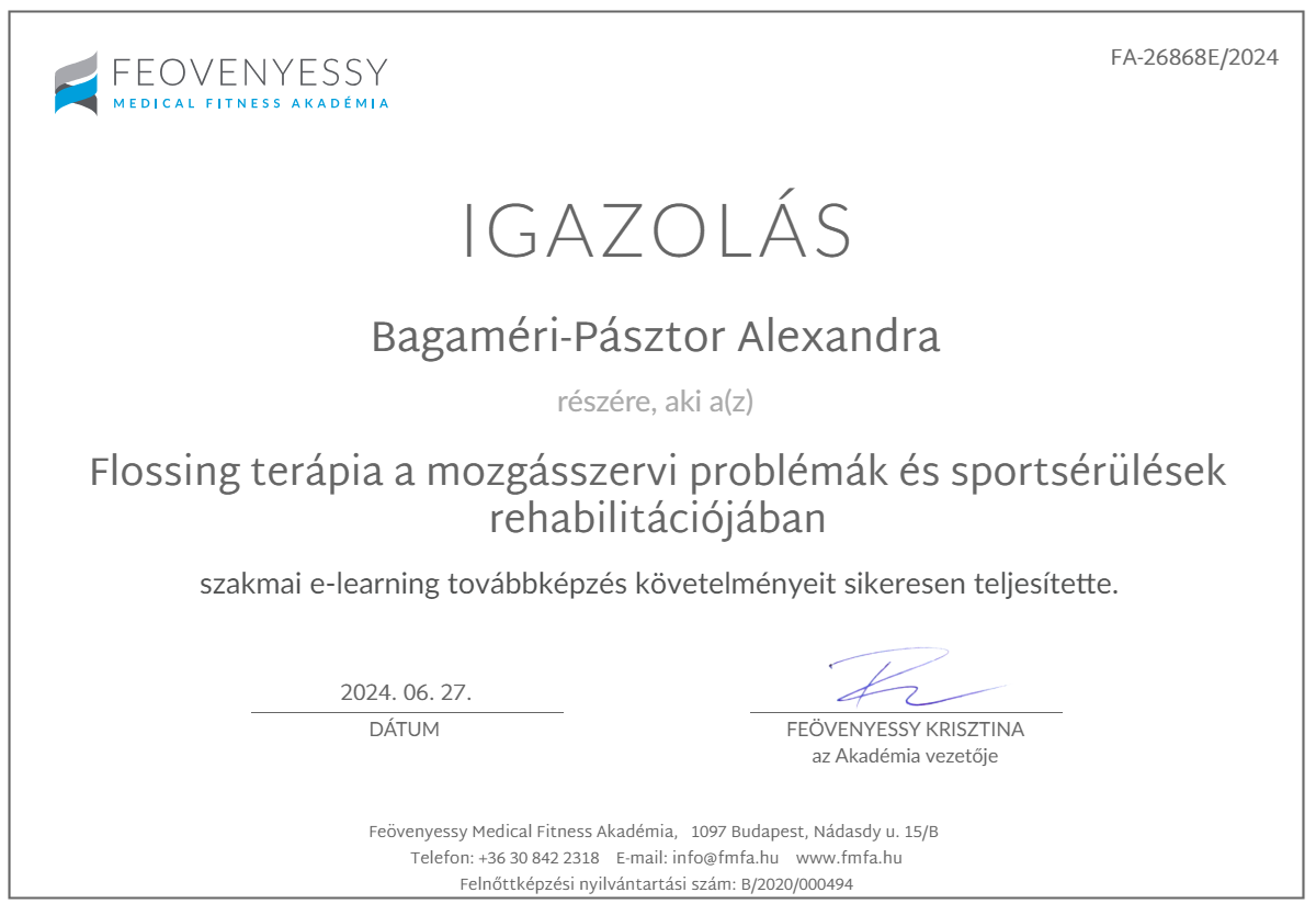 Funkcionális tréner – Feövenyessy Medical Fitness Akadémia (Feövenyessy Krisztina, Németh Olga, Boros Balázs) 2024