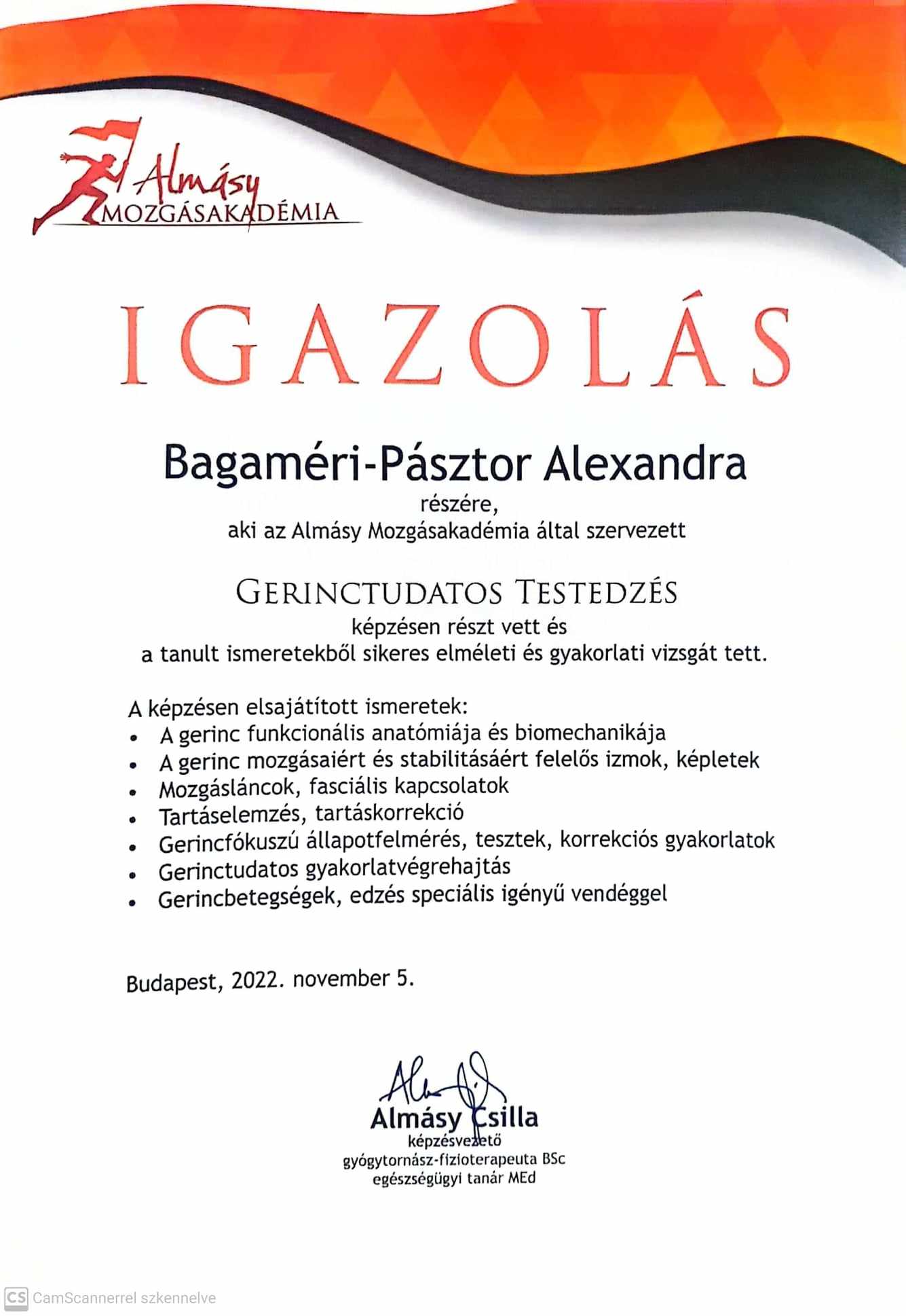 Gerinctudatos testedzés – Almásy Mozgásakadémia (Almásy Csilla, Lukács Ráhel, Lekrinszki Lilla) 2022