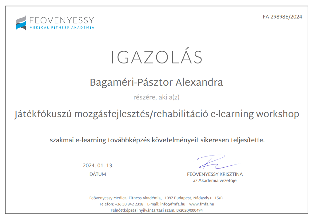 Játékfókuszú mozgásfejlesztés / rehabilitáció – Feövenyessy Medical Fitness Akadémia 2024
