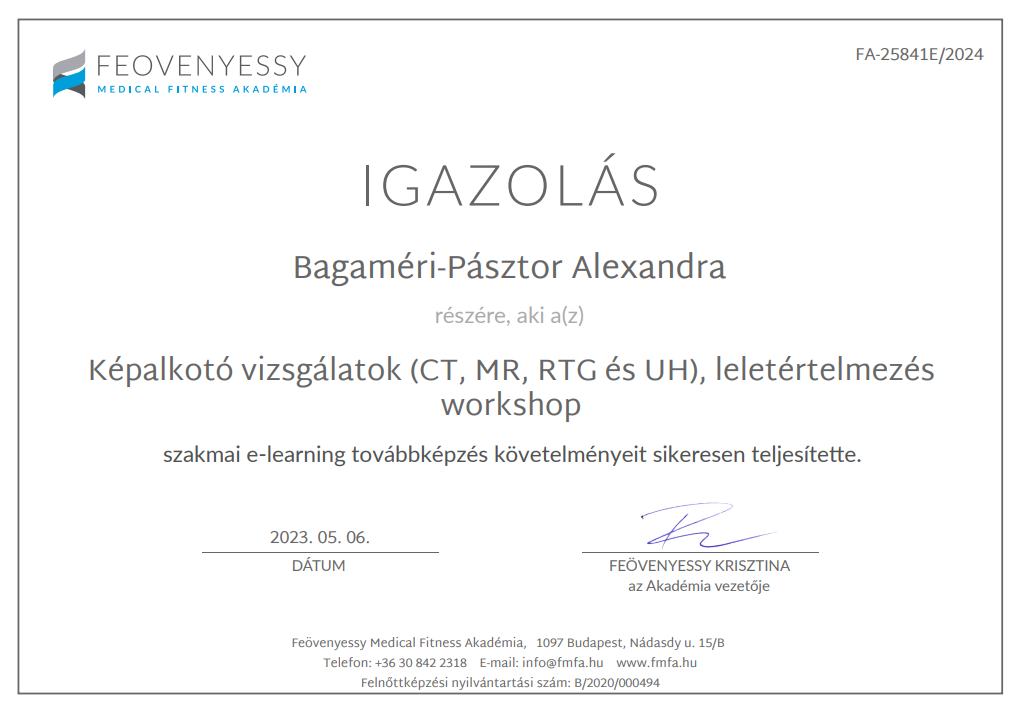 Képalkotó vizsgálatok (CT, MR, RTG és UH) leletértelmezés – Feövenyessy Medical Fitness Akadémia 2023