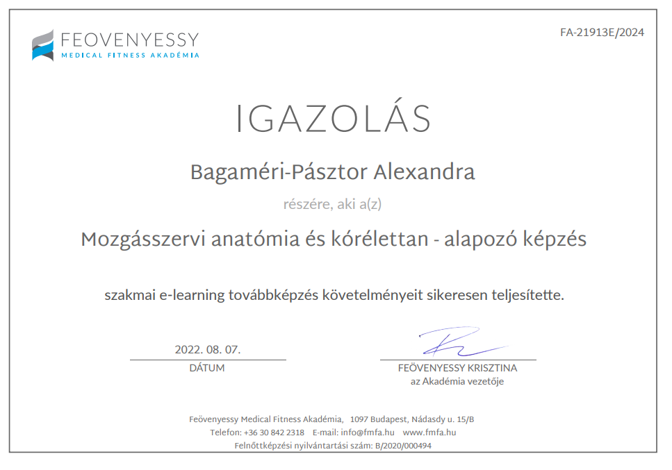 Mozgásszervi anatómia és kórélettan – Feövenyessy Medical Fitness Akadémia 2022