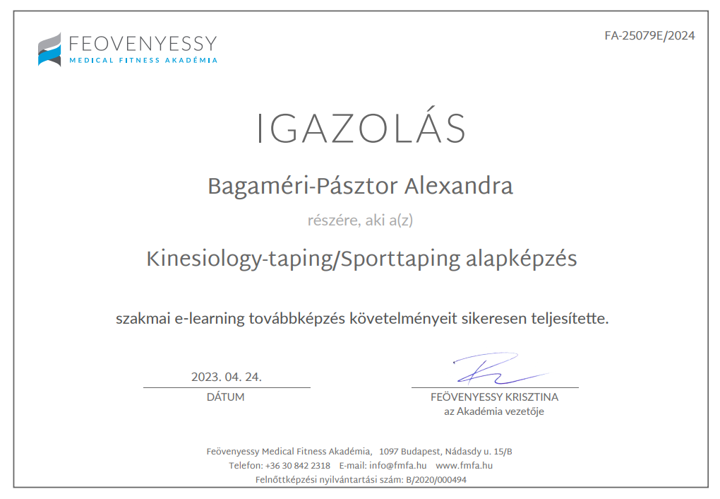 Kinesiology-taping/Sporttaping haladó – Feövenyessy Medical Fitness Akadémia (folyamatban)